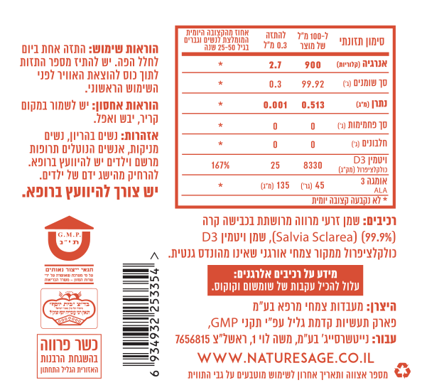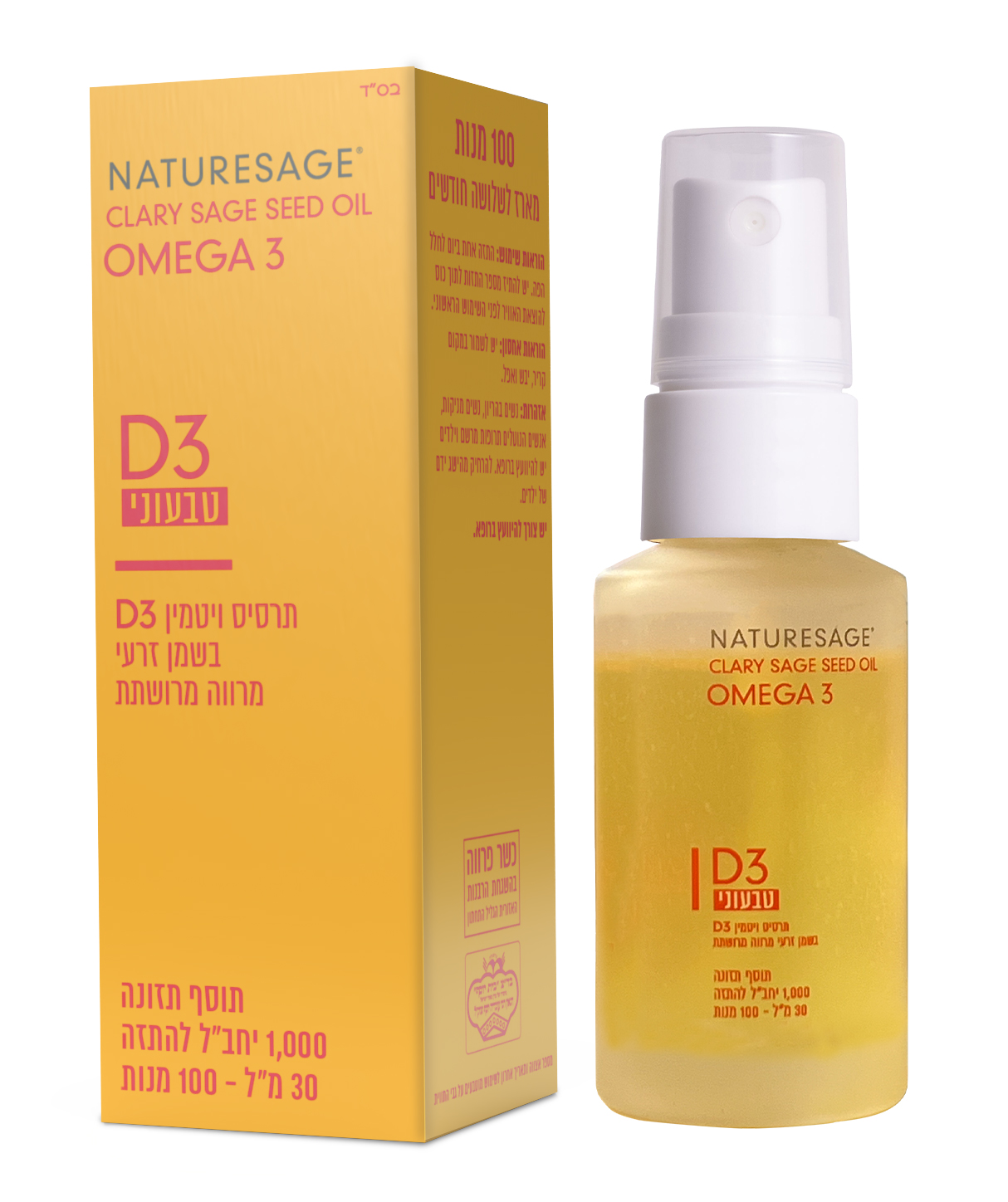ויטמין D3 ממקור טבעוני בשילוב עם שמן זרעי מרווה מרושתת בכבישה קרה.